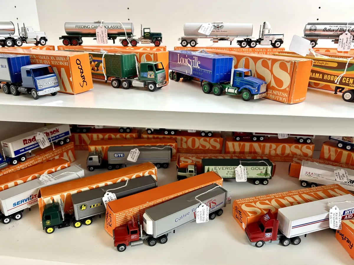 We sell model trucks by Winross. Located across from the checkout register. All trucks are well taken care of. We have ranging prices from $8.00 up to $20.00 per truck model. Boxes included. Stop by anytime and make an offer!