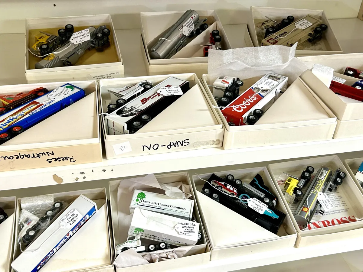 We sell model trucks by Winross. Located across from the checkout register. All trucks are well taken care of. We have ranging prices from $8.00 up to $20.00 per truck model. Boxes included. Stop by anytime and make an offer!